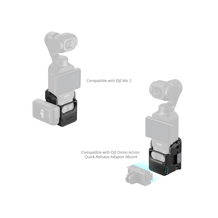 At the front of the cage, a magnetic quick release interface compatible with the original adapter of the Action series enables instant mounting and smooth shooting.