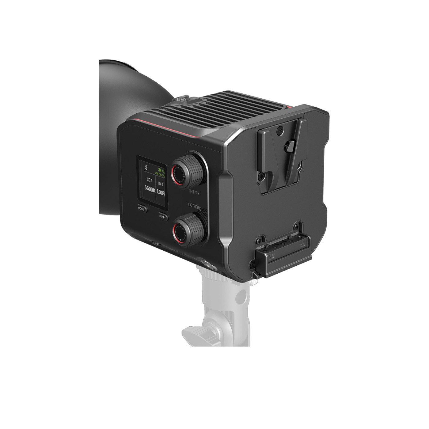 Lampen understøtter en bred vifte af både trådløse og kablede strømforsyninger, hvilket giver maksimal fleksibilitet. Brugerne kan vælge mellem V-mount-batterier eller NP-F970-batterier for trådløs strømforsyning. Alternativt kan enheden oplades via USB-C-porten med en PD-hurtigopladende powerbank, batterigreb eller en AC-DC-strømadapter. Den medfølgende EU-standard strømadapter leverer fuld effekt ved tilslutning til vægstik, hvilket sikrer plug-and-play-funktionalitet. Et enkelt 98Wh V-mount-batteri giver op til en times fuld strøm, hvilket muliggør uafbrudt optagelse med hurtige batteriskift.