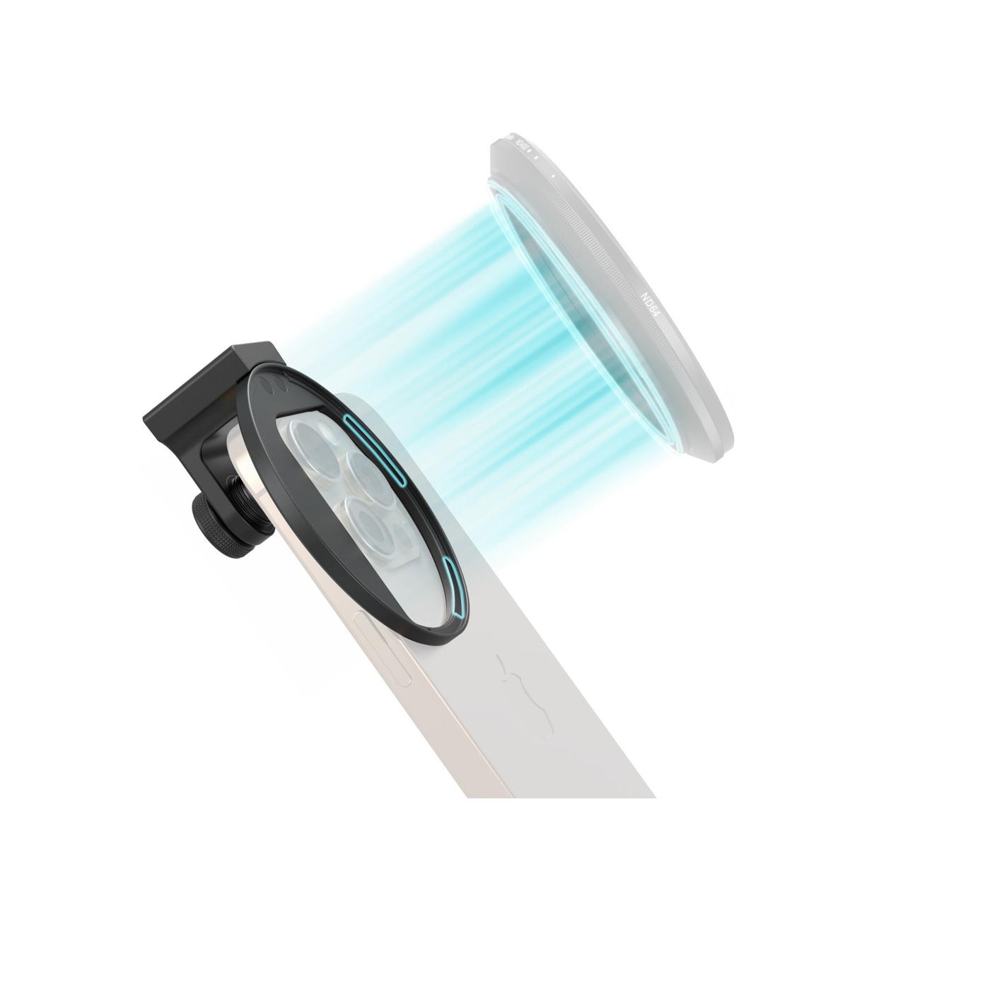 Featuring a magnetic attachment, the adapter enables seamless filter installation and replacement. A locking knob securely fastens the filter to the phone for enhanced stability, while anti-scratch padding on both sides protects the phone.