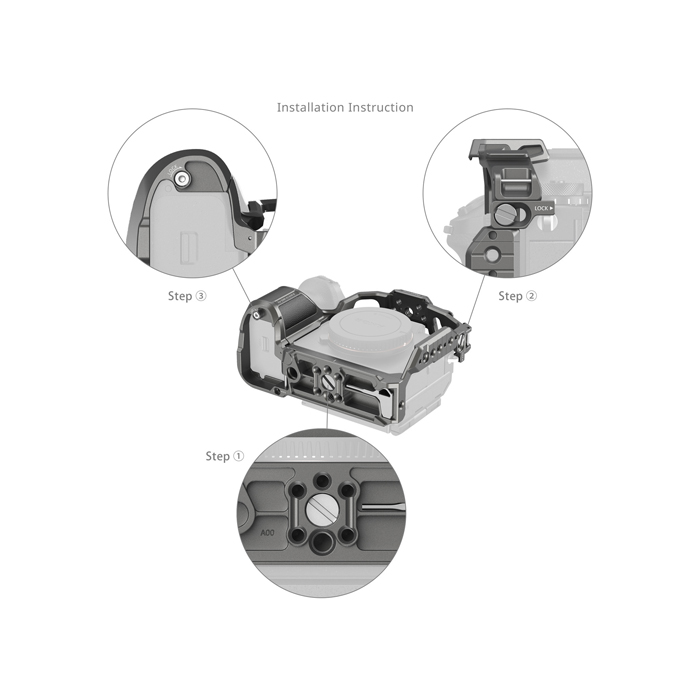 Det innovative trepunkts anti-deflektionslåsesystem sikrer kameraet med to 1/4"-20-skruer placeret i bunden og højre side samt en M4-lokaliseringsstift i bunden, uden at det er nødvendigt at fjerne D-ringene.