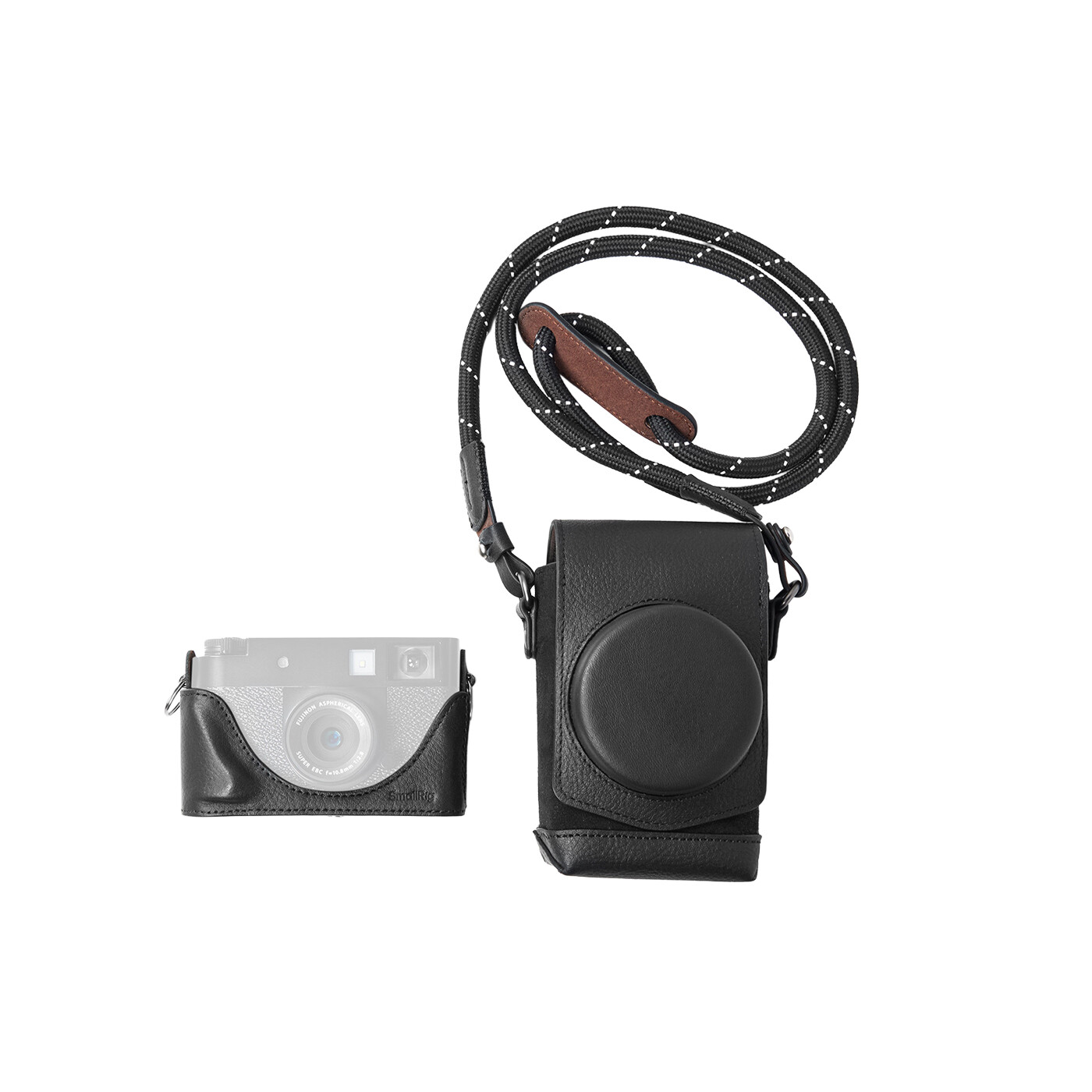 SmallRig 5219 Læderetui-sæt til FUJIFILM X half (Sort) er designet til at give omfattende beskyttelse og samtidig fremhæve kameraets vintage-æstetik. Sættet inkluderer en fuldt dækkende bæretaske, en half-case og en vævet skulderrem.