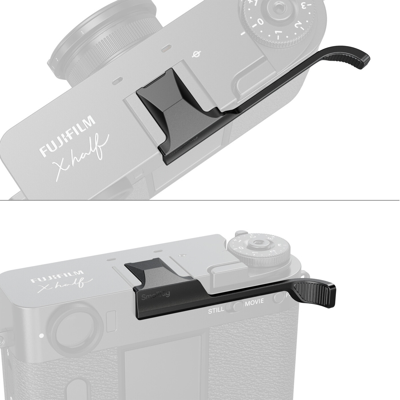 SmallRig 5222 Tommelfingerstøtte til FUJIFILM X half (Sort) er designet til at forbedre grebsikkerheden ved enhåndsbetjening af kameraet. Tommelfingerstøtten skubbes let ind i kameraets hot shoe for hurtig montering og afmontering.