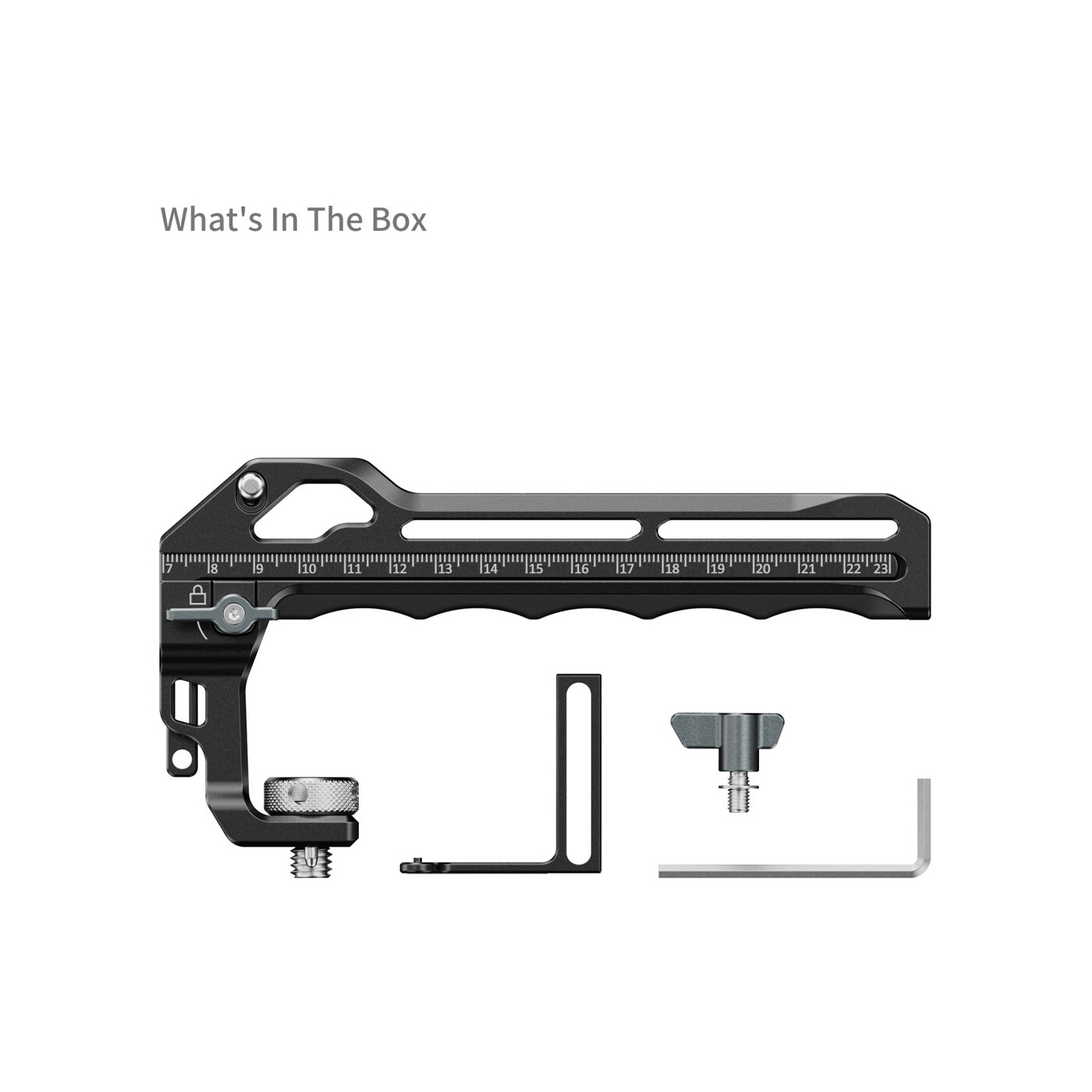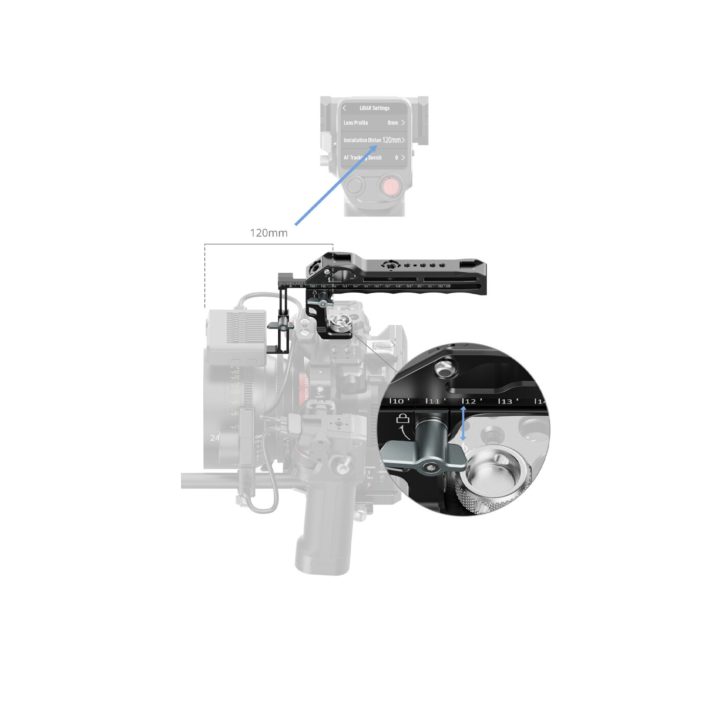 Det integrerede teleskopsystem gør det muligt at justere LiDAR-modulet både vertikalt og horisontalt, så det kan placeres præcist tæt ved fronten af objektivet. Det reducerer parallax betydeligt og forbedrer autofokus-præcisionen. En indbygget måleskala på 23 cm giver direkte afstandsmålinger mellem LiDAR-glassets plan og kameraets fokusplan, hvilket forenkler kalibreringen. Det aftagelige beslagdesign muliggør fleksibel opsætning til forskellige optagesituationer. Når grebet ikke bruges med DJI Focus Pro-systemet, fungerer det som et almindeligt topgreb – og giver dermed både alsidighed og god værdi for pengene.