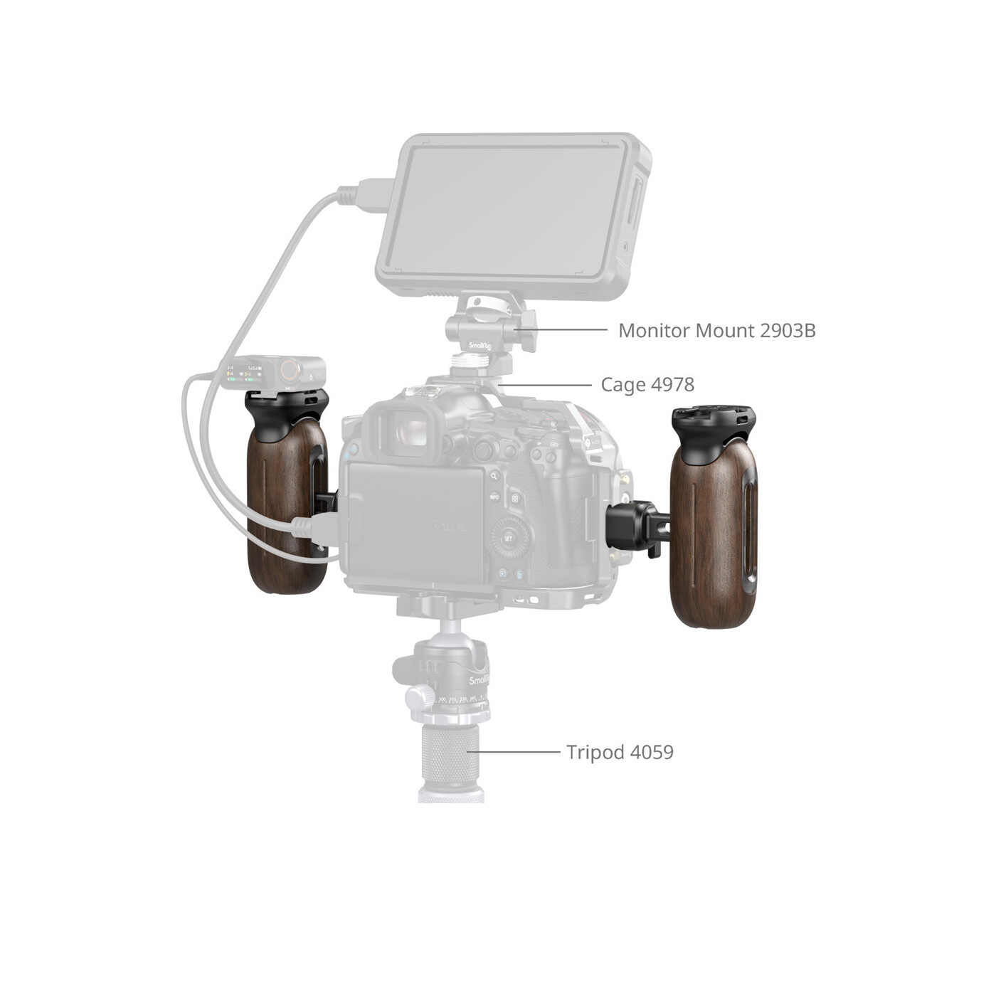 Det kapselinspirerede design forener æstetik og stabilitet, og de udhulede sektioner reducerer vægten uden at gå på kompromis med robustheden. Øverst findes en cold shoe-montering til mikrofoner eller lamper samt et 1/4"-20 positioneringshul til tilbehør som magic arms og monitorholdere (ID 4886). Derudover tilbyder grebet 27 mm lodret justering for optimal balance og kontrol.