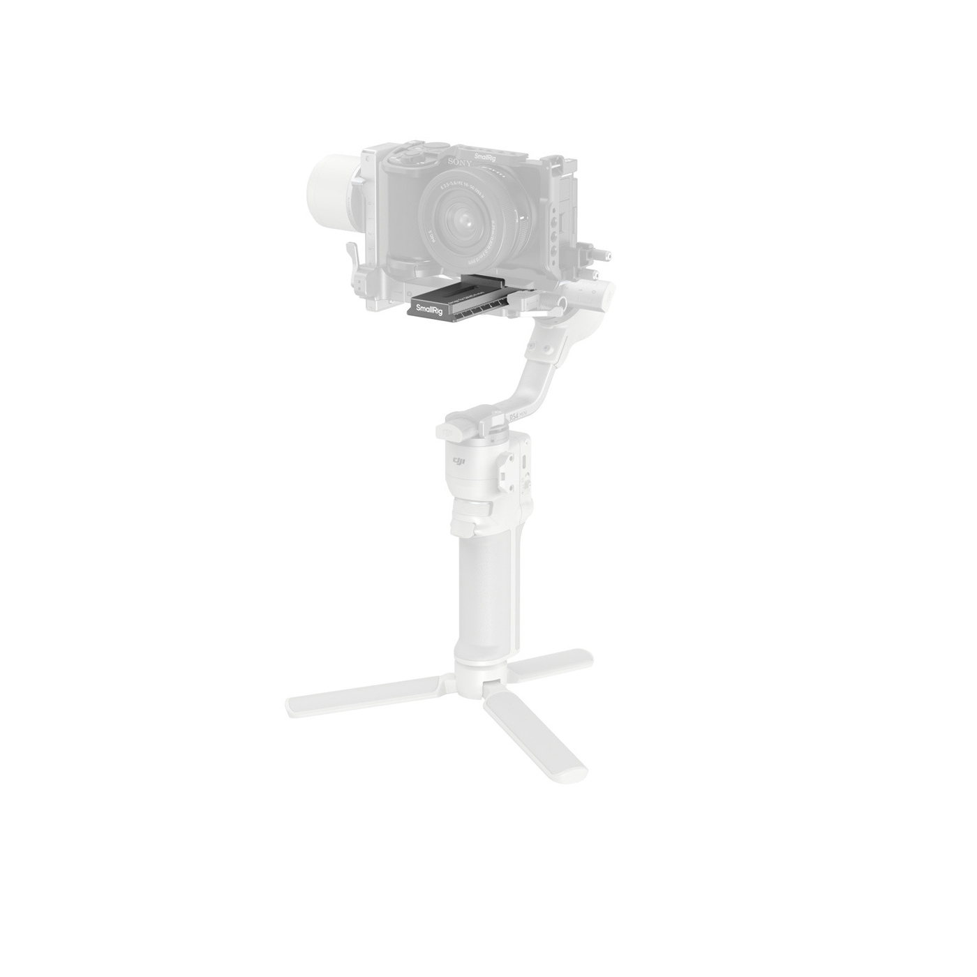 SmallRig Quick Release Plate for DJI RS 4 Mini 5336 is a dedicated plate designed to optimize shooting efficiency by enabling a quick switch between tripod and stabilizer setups. This quick-release plate for Arca-Swiss can be attached by tightening a thumbscrew, eliminating the need for additional tools.