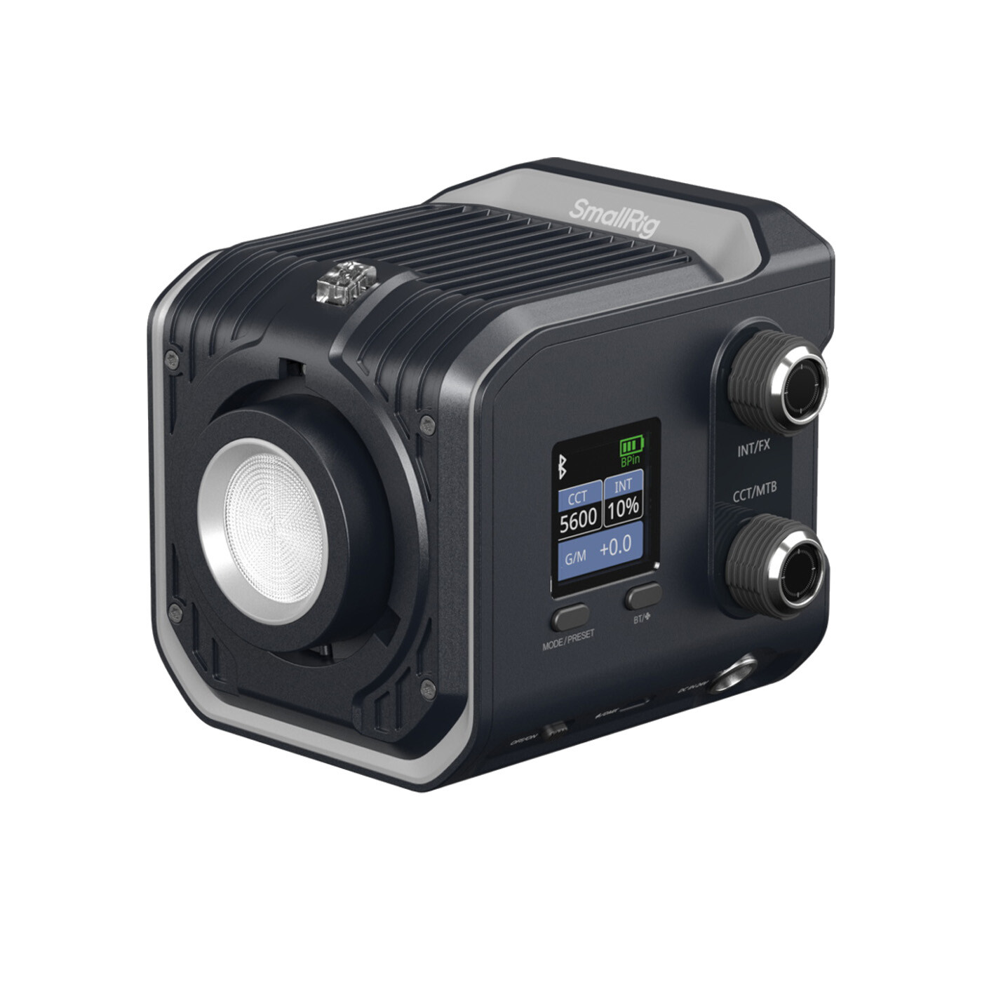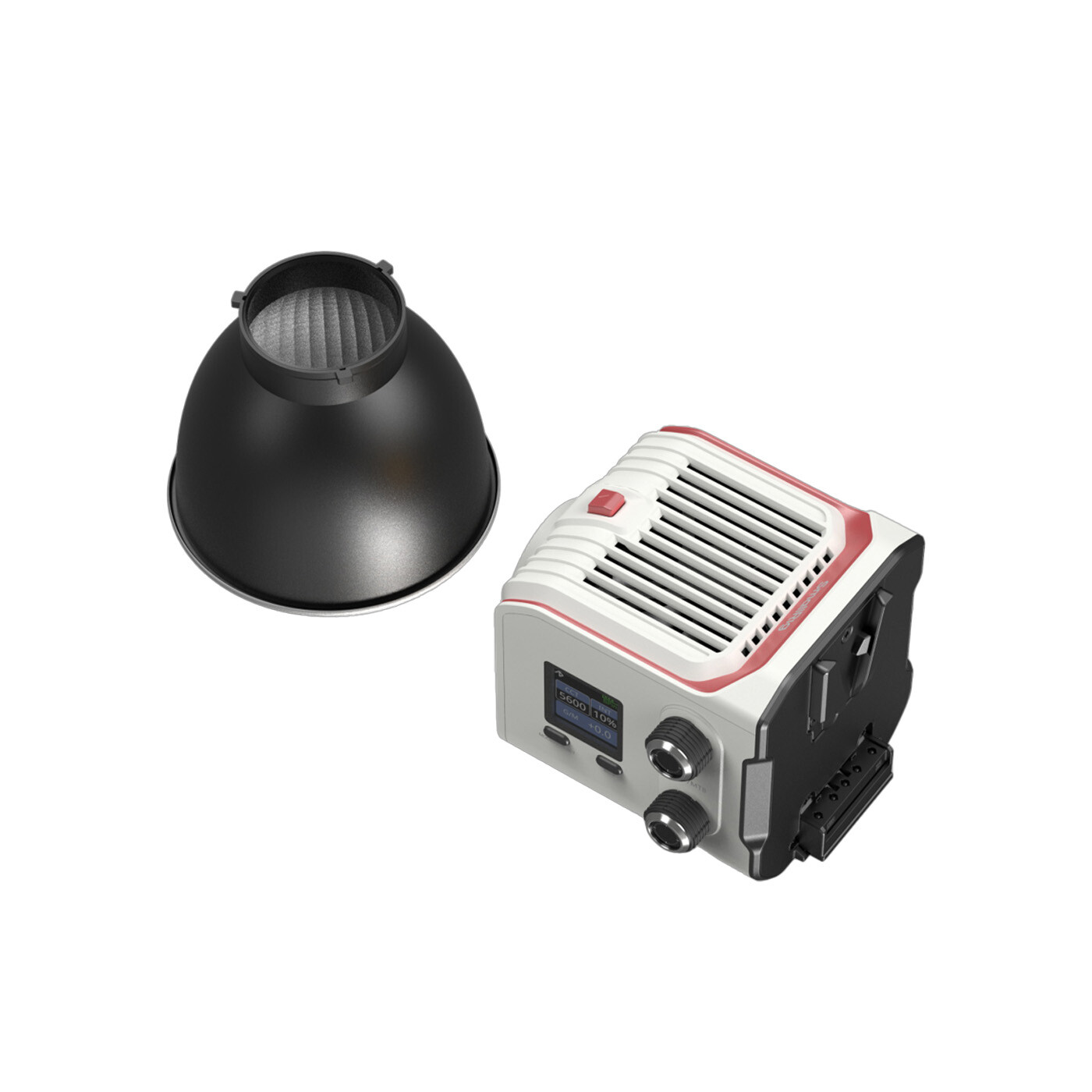 RC 100C er en innovativ LED-lampe med et elegant, kubisk design og et effektivt, integreret kølesystem. Den er kompakt og let og vejer blot 710 g. Sammenlignet med traditionelle COB LED-lamper fylder den kun en tredjedel og minder i størrelse og form om RED KOMODO-kameraet.