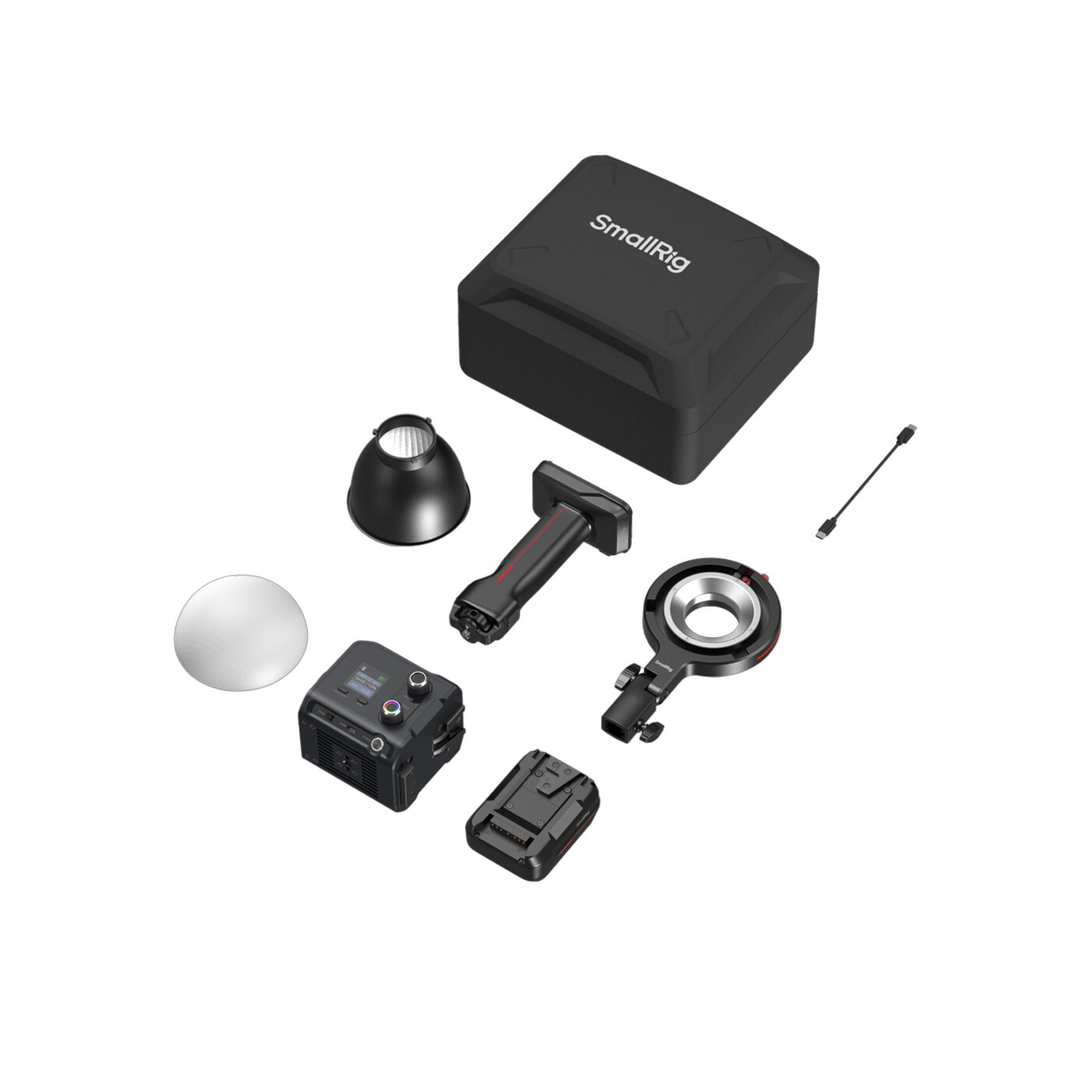 RC 100C er fuldt kompatibel med SmallRigs mini-lysmodifikatorer (D30, D60, 45x45 softbox, SP-mini spot), batteritilbehør (V-mount og NP-F970, batterihåndtag, batteriplader) og monteringsudstyr (quick release-adaptere til lysstativer, Bowens-adaptere, magic arms med ARRI 1/4”-20 positioneringspin).