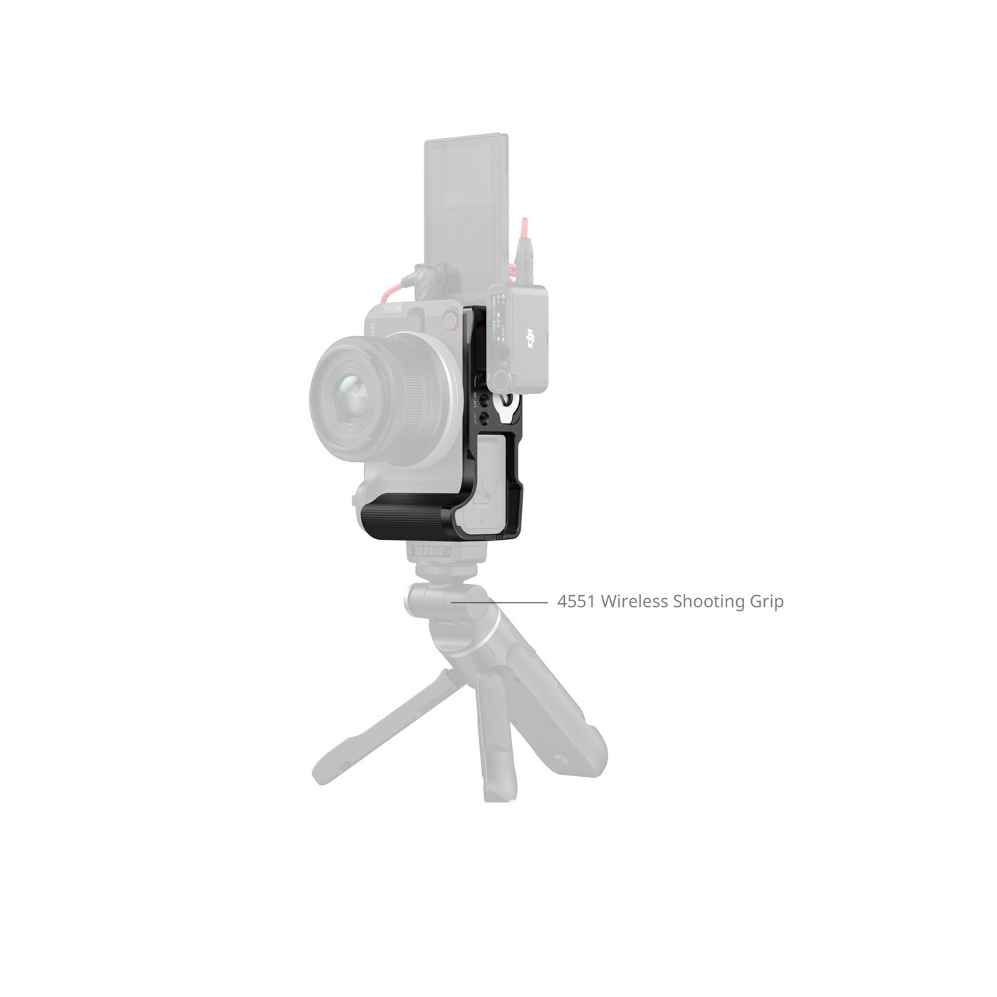 Den integrerede cold shoe-fatning i bunden giver mulighed for at montere tilbehør som mikrofoner (ID 3468) eller videolys (ID 4660) ved vertikal optagelse. Derudover gør den indbyggede Arca-Swiss quick release-plade det nemt at montere kameraet på Arca-kompatible stativer og DJI RS-stabilisatorer. Monteringspladen giver fuld adgang til alle kameraets funktioner – herunder knapper, batterirum, fokusring og hukommelseskortslot.