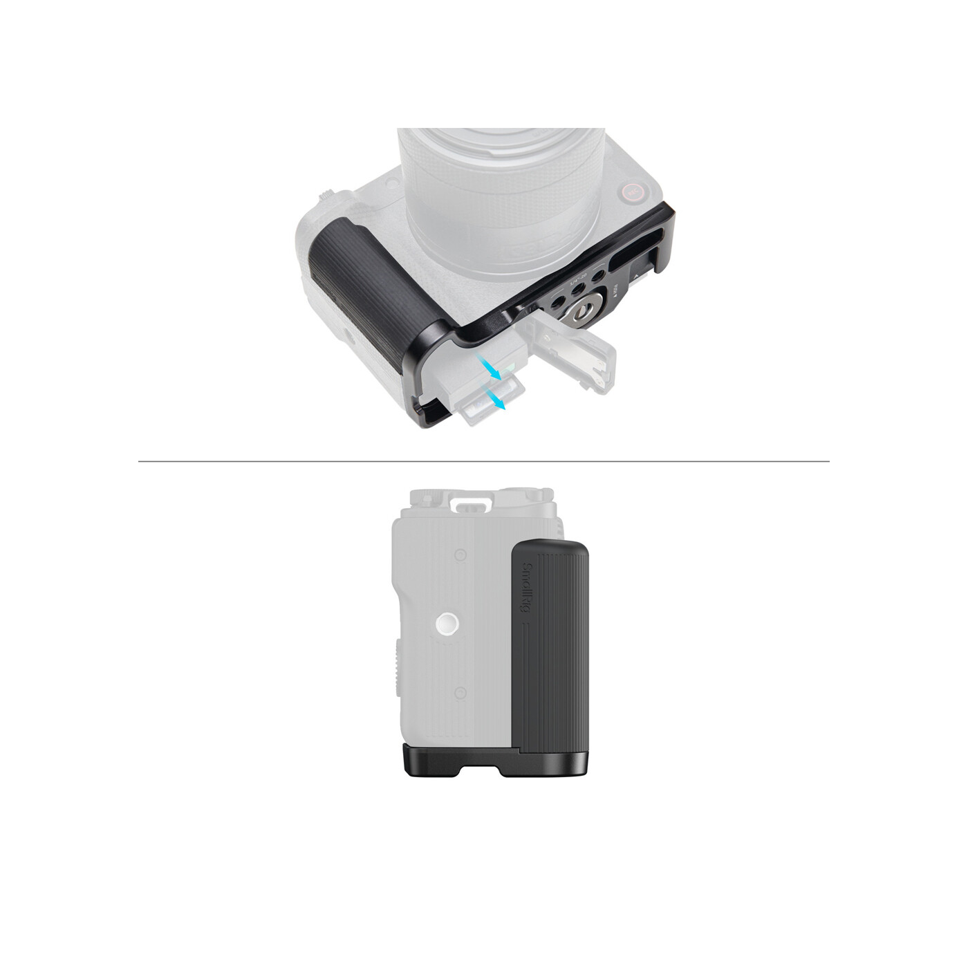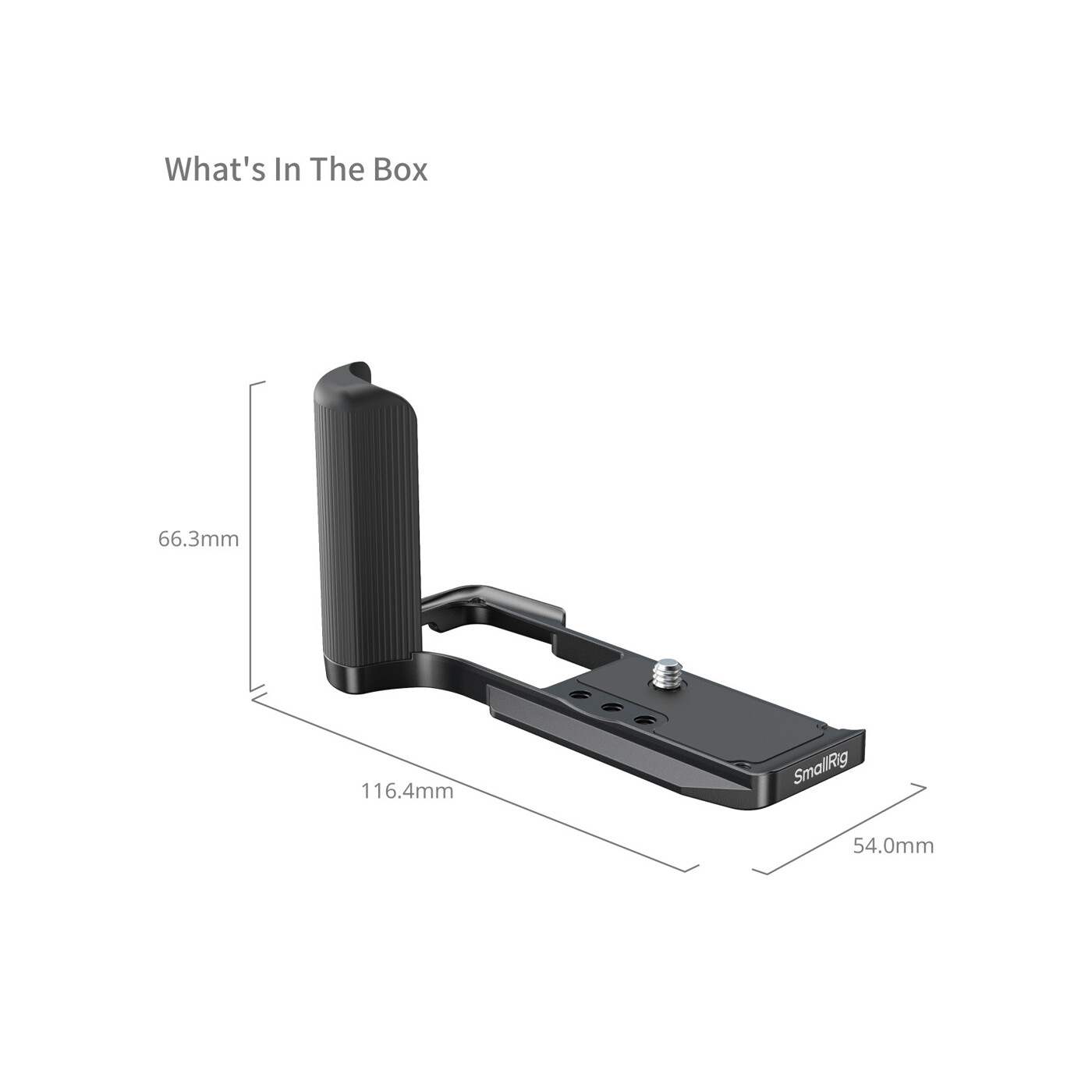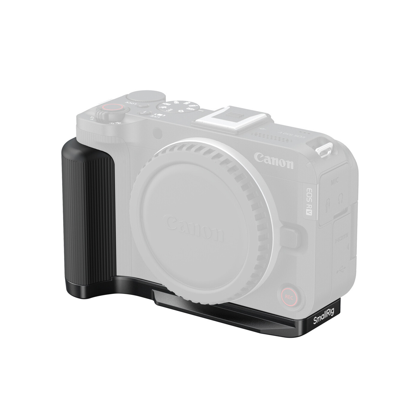SmallRig 5429 L-formet monteringsplade med håndgreb til Canon EOS R50 V (Sort) er designet med fokus på optimeret greb og æstetik. Den fastgøres sikkert til kameraet med en 1/4"-20 skrue, mens indvendige silikonepuder beskytter mod ridser. Det ergonomiske silikonegreb er både kompakt og let og giver bedre kontrol og komfort ved længere tids brug.