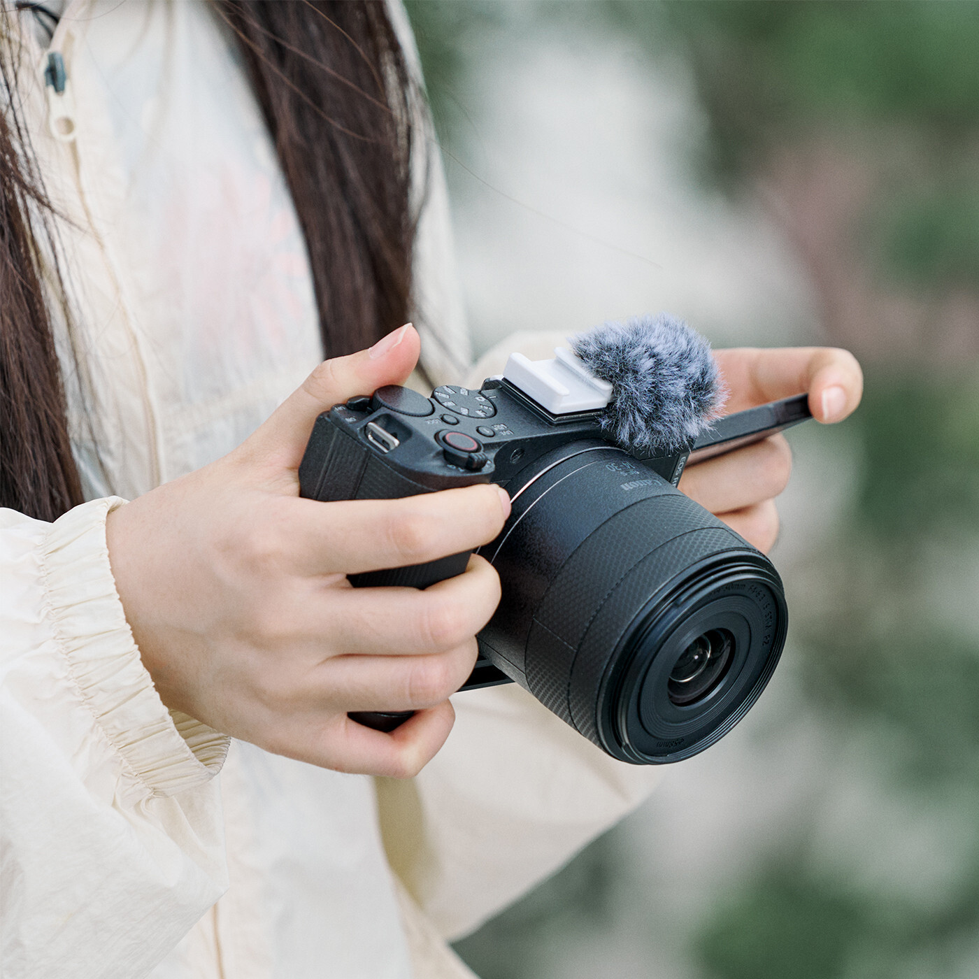 SmallRig 5434 Furry Windscreen Kit til Canon EOS R50 V (2 stk.) leverer professionel vindstøjsreduktion og forbedret lydoptagelse. Windscreenen monteres i kameraets tilbehørssko via en cold shoe-adapter, mens den indbyggede silikonepude beskytter mod ridser.