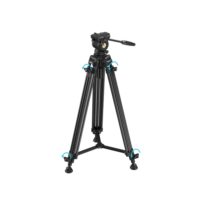 Fremstillet i aluminiumlegering med en 2-2-1-segmenteret benkonstruktion og indbyggede, drejelige gummifødder med anti-aftræksfunktion, sikrer stativet optimal stabilitet selv på ujævnt eller stenet underlag. På trods af den solide konstruktion vejer hele systemet kun 2,7 kg, hvilket gør det særdeles nemt at transportere i krævende optagemiljøer.