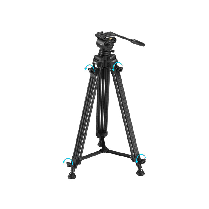Fremstillet i kulfiber og med en 2-2-1-segmenteret ben konstruktion samt indbyggede, drejelige gummifødder med anti-aftræksfunktion, sikrer stativet optimal stabilitet selv på ujævnt eller stenet underlag. På trods af den solide konstruktion vejer hele systemet kun 2,7 kg, hvilket gør det særdeles nemt at transportere i krævende optagemiljøer.