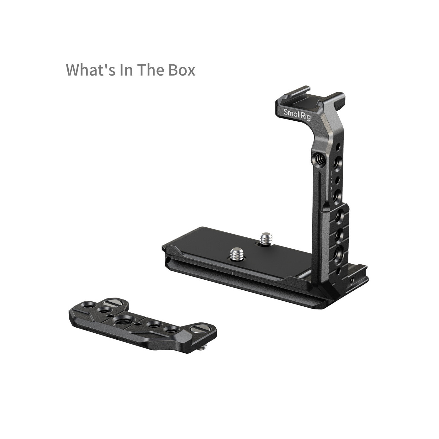 Den aftagelige topplade har en NATO-skinne og kan rumme Sonys XLR-topgreb eller SmallRigs roterende topgreb (ID 4152) uden at forstyrre EVF’en. Med præcise udskæringer sikrer cagen fuld adgang til kameraets vipbare EVF, knapper og porte. Med flere monteringspunkter, herunder 1/4"-20 gevindhuller, 3/8"-16 ARRI-lokationshuller og en “HawkLock” NATO-skinne, kan tilbehør som sidegreb (ID 4485) og topgreb (ID 4483) hurtigt monteres. En cold shoe-montering giver mulighed for tilslutning af f.eks. DJI Mic 2 eller LED-lys, mens et QD-stik i bunden kan bruges til skulderstropper for øget bærbarhed.
