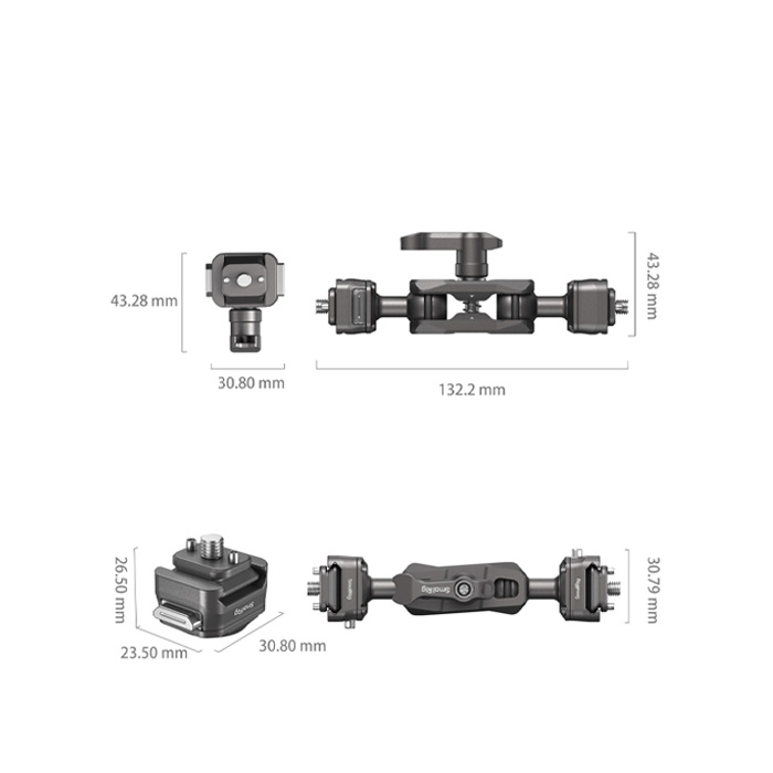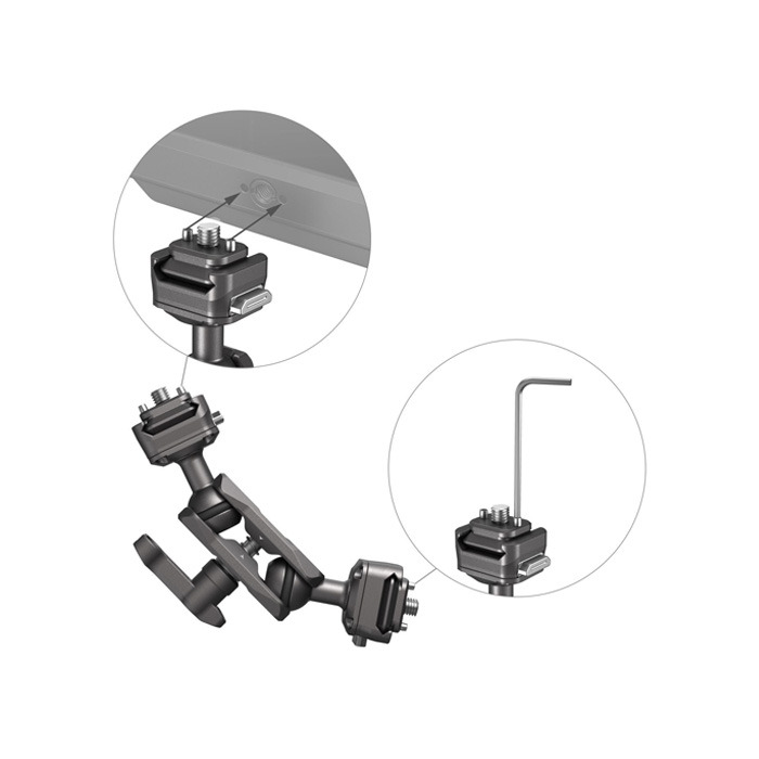 With a ø20mm / 0.8in ball head and 1/4”-20 screws featuring detachable locating pins at both ends, this ball head, when used with SmallRig camera cages 4119B, 3084C, 4088B, and monitors with similar locating hole specifications, effectively prevents equipment deviation, ensuring the safety of the equipment.
