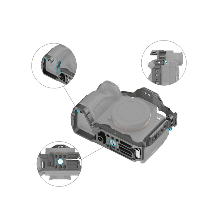 SmallRig 4539 HawkLock Quick Release Advanced Cage Kit for Sony Alpha 7R V / Alpha 7 IV / Alpha 7S III is designed for easy disassembly when shooting handheld, reducing the burden on the arm to enhance stability, while offering a wide range of accessory mounts.