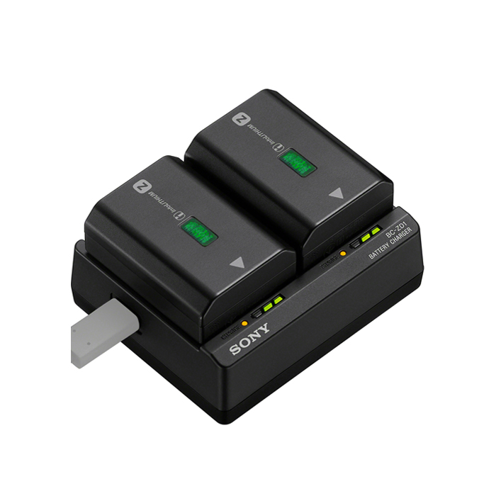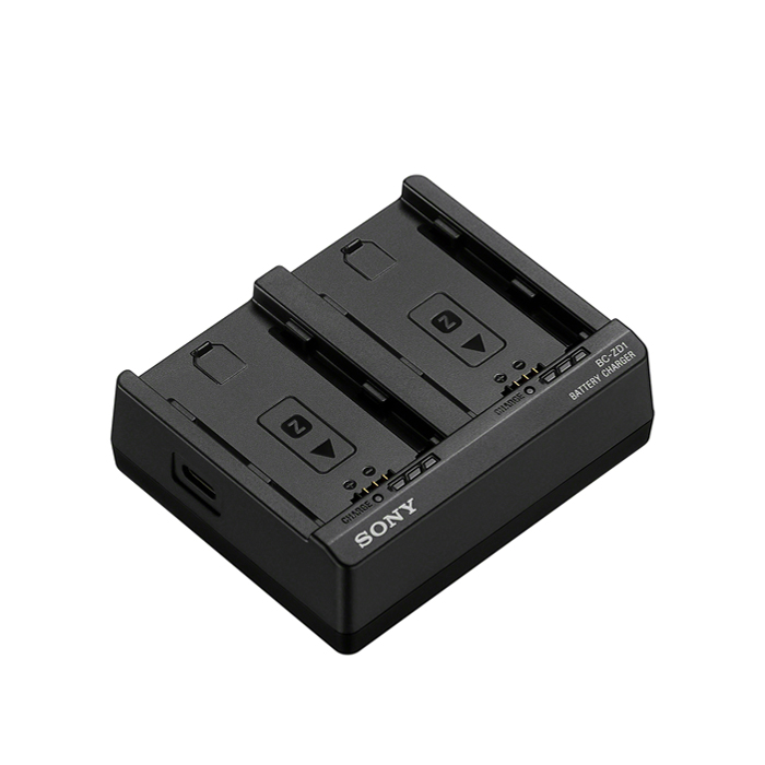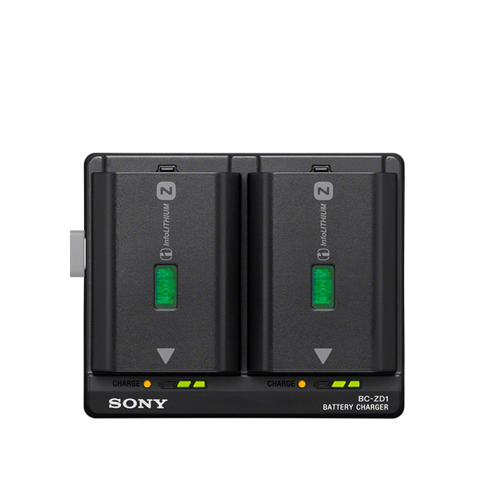 BC-ZD1 er en oplader, der understøtter USB Power Delivery (PD), til højtydende NP-FZ100-batterier fra Sony. BC-ZD1 kan oplade to batterier samtidig på ca. 155 minutter (fuld opladning), når den er tilsluttet en USB PD-kompatibel strømforsyning med et output på 30 W eller højere (strømforsyning og kabel medfølger ikke).