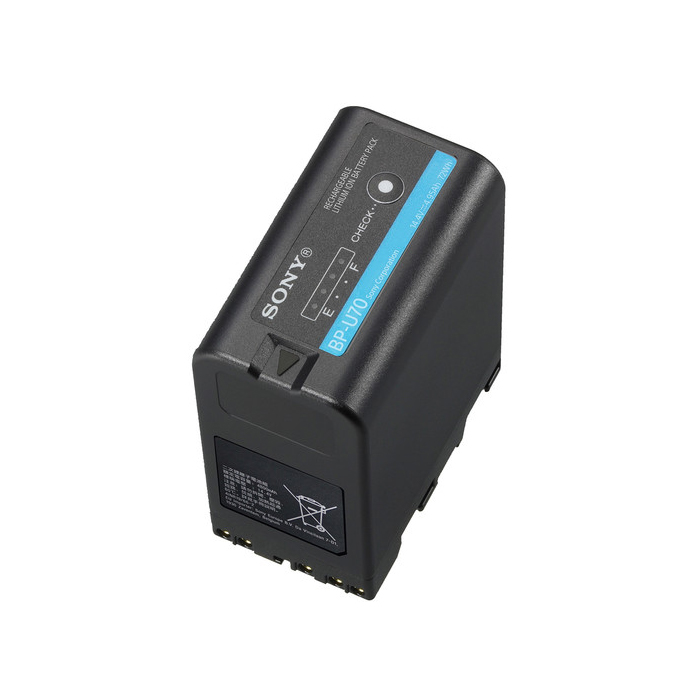 The Sony BP-U70 is a high-performance 72Wh lithium-ion battery compatible with select Sony professional video cameras, such as the FS7/FS9.