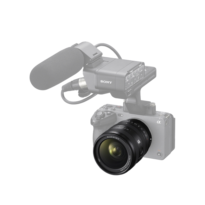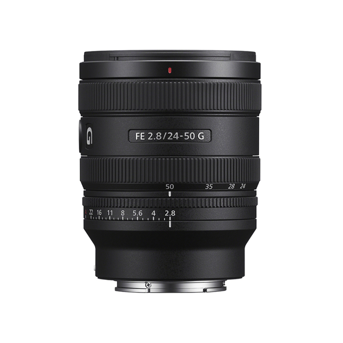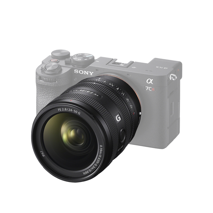 Kompakt f/2.8-zoomobjektiv med G Lens™-opløsning, 24-50 mm-område. Avanceret optik, overlegen skarphed, hurtig AF, ideelt til film. Understøtter indbygget stabilisering, ideelt til gimbals og droner.