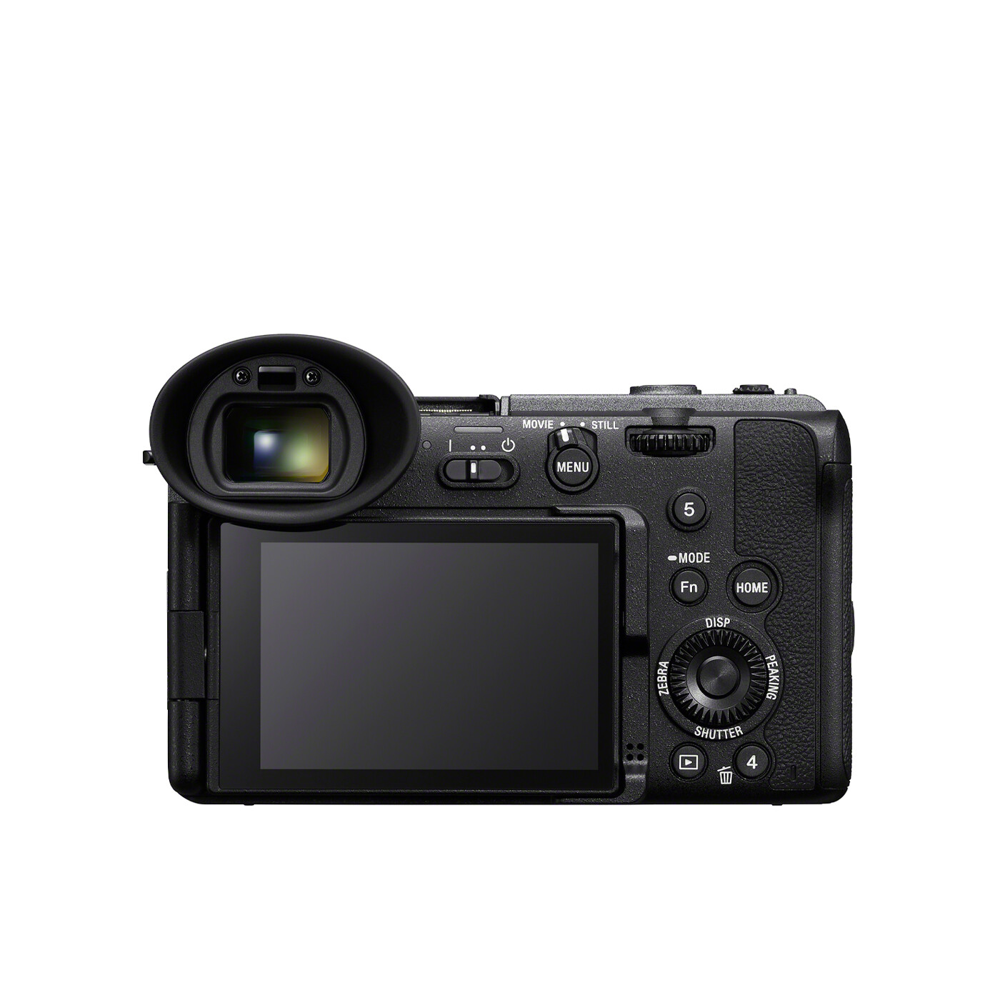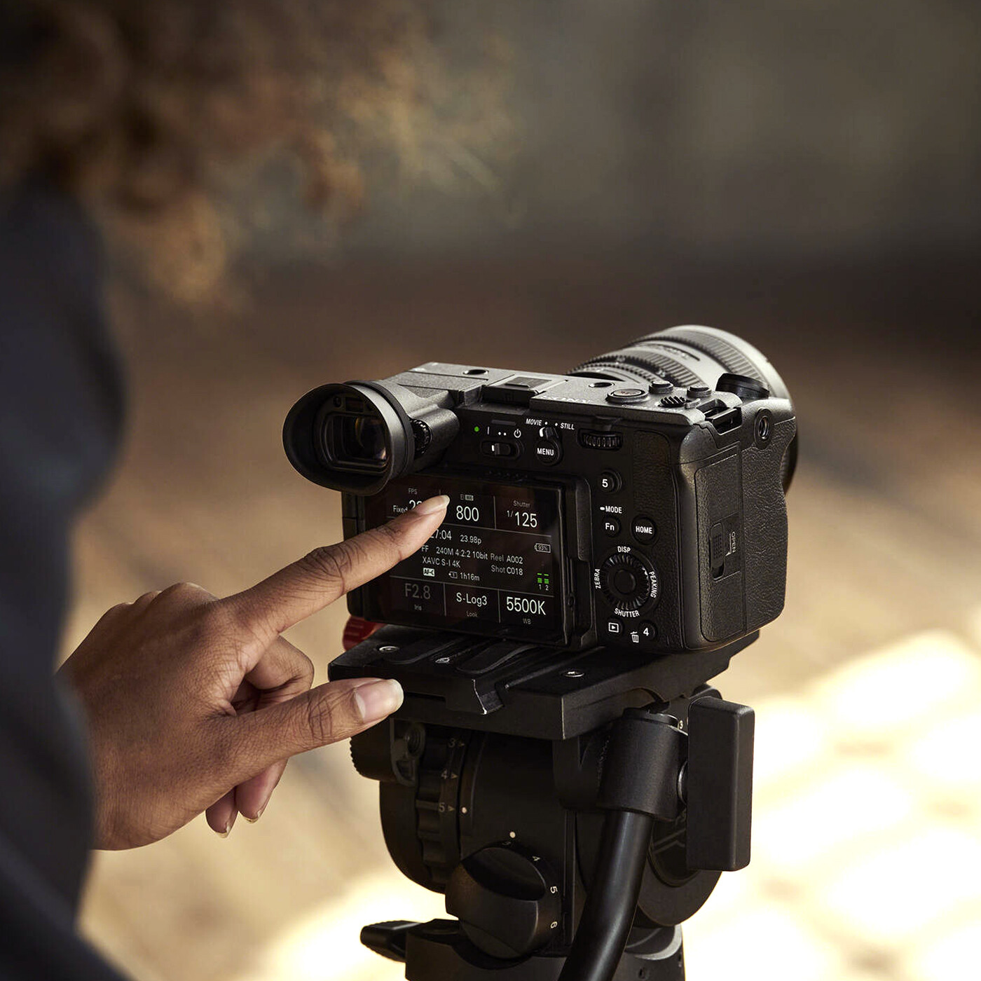 Hold fokus under optagelsen, selv i meget lyse eller distraherende omgivelser, takket være en OLED-søger med ca. 3,68 millioner punkter. Forstørrelsen er 0,70x (50 mm objektiv, uendelig fokus, -1m dioptri), og synsvinklen og øjepunktet er optimeret til videooptagelse. Selve søgeren kan drejes fra 0° til +90°, så det er nemt at se i næsten alle vinkler, og øjestykket kan fjernes eller vendes fra venstre mod højre efter behov.