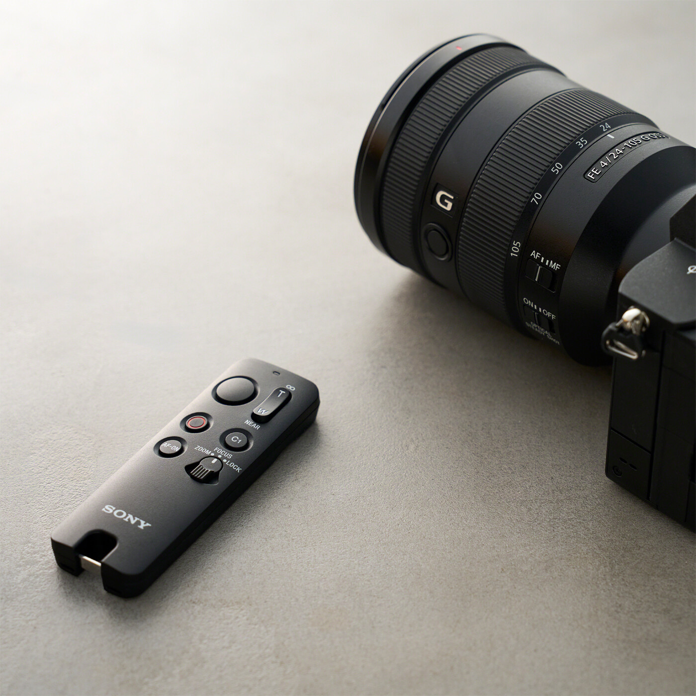 RMT-VP2-fjernbetjeningens frontpanel har lukker-, MOVIE (optag)-, AF-ON-, C1- og zoom/fokusknapper, så du optage video eller tage billeder med én hånd. Hvis du på forhånd tildeler en hyppigt anvendt funktion til kameraets AF-ON- eller C1-knap, får du adgang til den samme funktion ved at trykke på den tilsvarende knap på fjernbetjeningen, så du kan tilpasse knapperne, så de passer til dine behov.