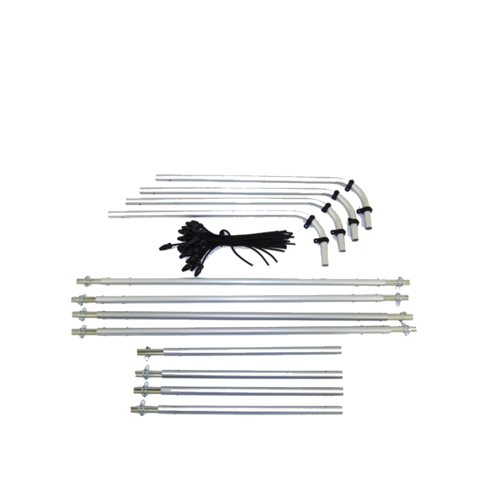 These special frames, made by hand from anodized aluminium, can be collapsed within two minutes to fit into an approx. 15 cm diameter bag. Here, too, our SUN-SCRIM items have a maximum length of 135cm and thus provide a solution that can easily be stored away as flight luggage or in the boot of a car.