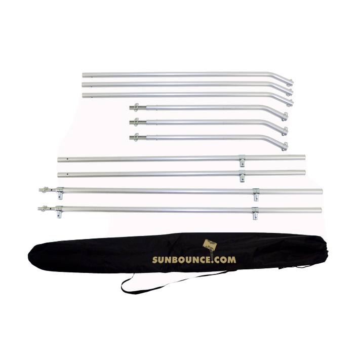 These special frames, made by hand from anodized aluminum, can be collapsed in seconds to fit into an approx. 6-8cm diameter bag. All SUNBOUNCE items have a maximum length of 135cm.