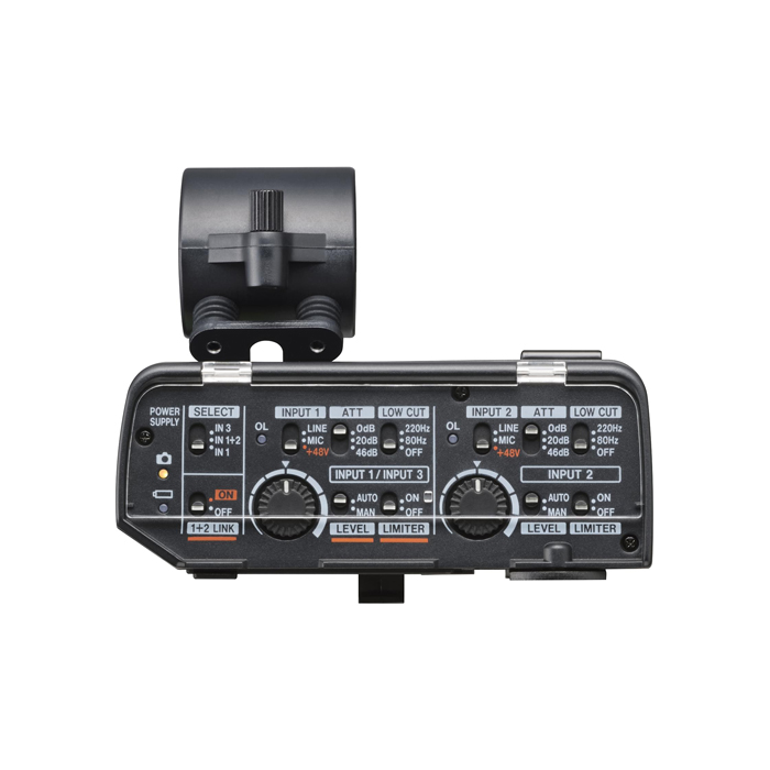 The included audio processing features such as auto-level, low-cut filter and limiter can be accessed using convenient switches. The CA-XLR2d can also link two input channels, which allows you to control the input gain as well as the LEVEL and LIMITER settings simultaneously for the left and right channels when recording in stereo.