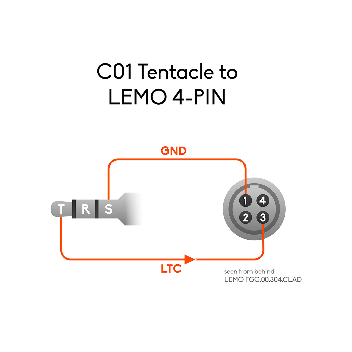 Specialkabel til at sende timecode fra enhver Tentacle Sync timecode-generator SYNC E og ORIGINAL, TRACK E timecode audio recorder eller TIMEBAR til alle RED-kameraer med 4-pin LEMO sync-port. (Inklusive: DSMC2 V-Lock I/O Expander, DSMC2 Base Expander, DSMC2 Jetpack-SDI Expander og andre)