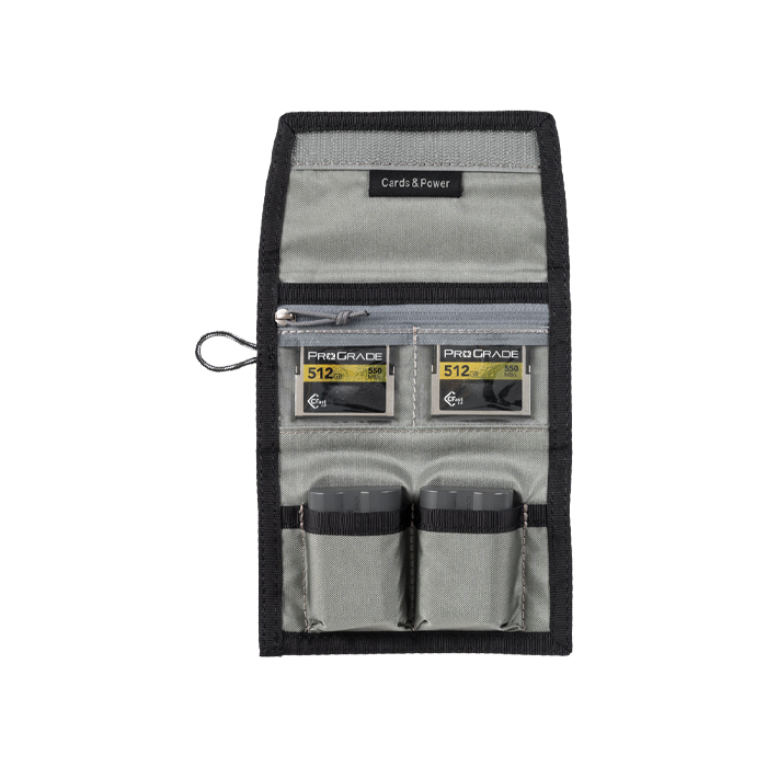 Praktisk foldbar pung med plads til både hukommelseskort og batterier. Slut med at lede i hele tasken efter nyt batteri eller kort, med denne pung er det organiseret og samlet på et sted. Passer nemt i lommen eller kan fastgøres til dit bælte eller din taske.