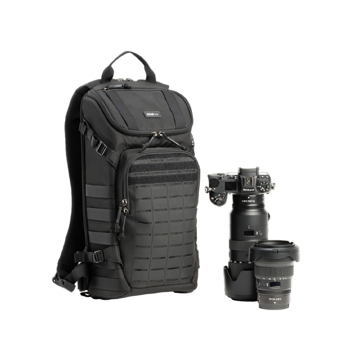 - Tactical webbing rails on the side enable you to attach Think Tank modular pouches