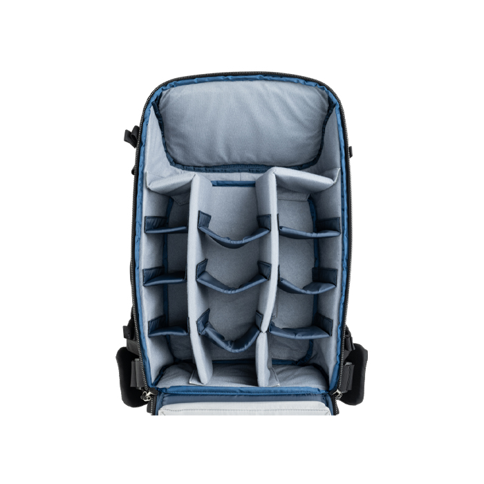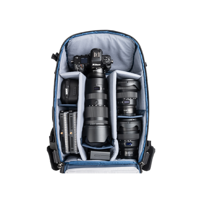 - Adjustable dividers accommodate large telephoto lenses, traditional photo gear, or personal items