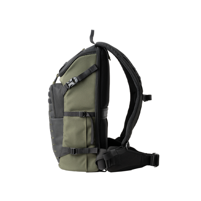 - Right side pocket with web cinch fits a water bottle or tripod using upper and lower compression straps with SR buckles for added security