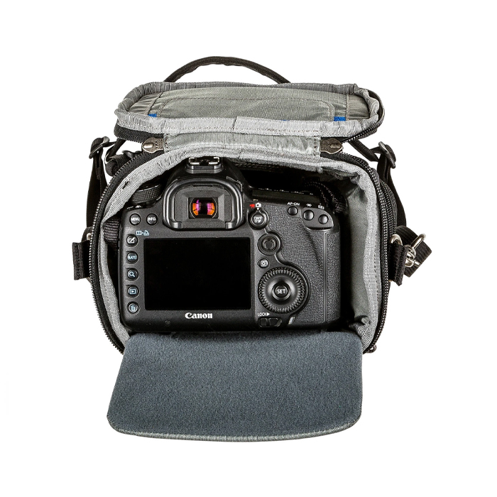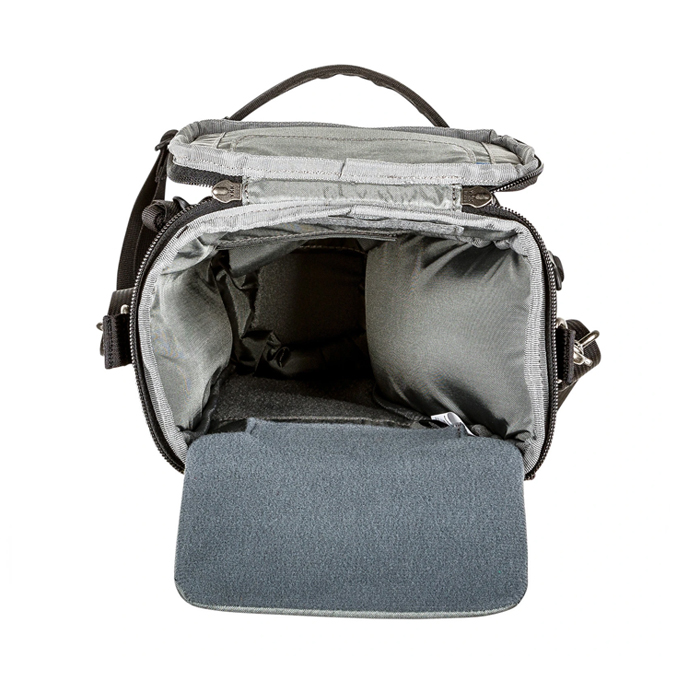 - “Pop Down” increases bag height for a lens hood or a telephoto lens