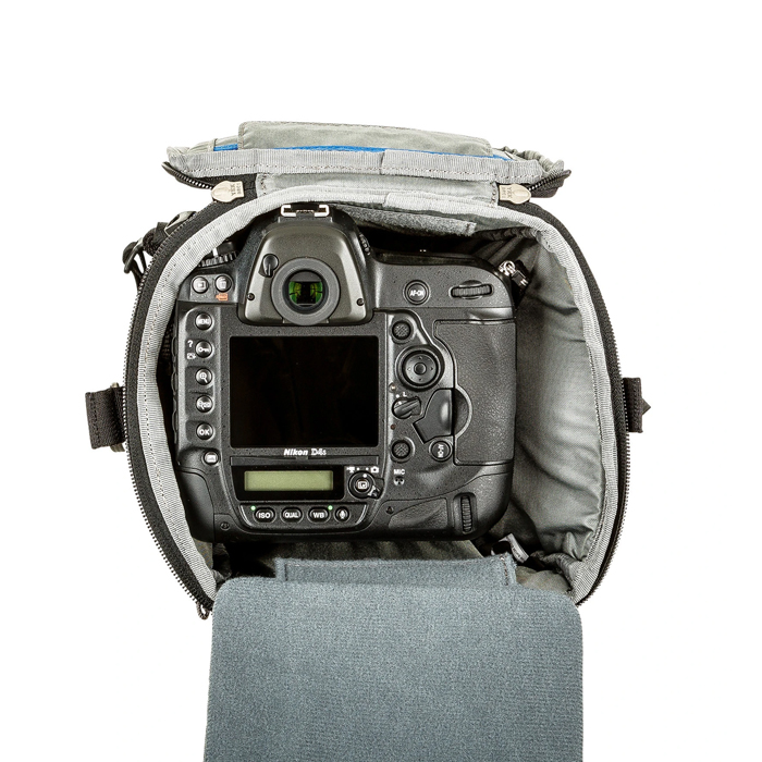 - “Pop Down” increases bag height for a lens hood or a telephoto lens