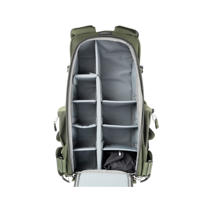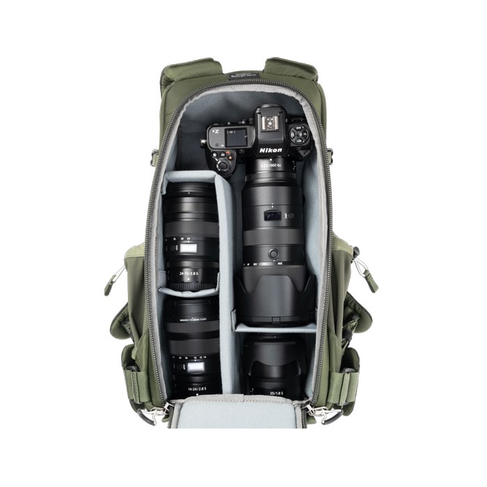 - Adjustable dividers for large telephoto lenses, traditional photo gear, or personal items