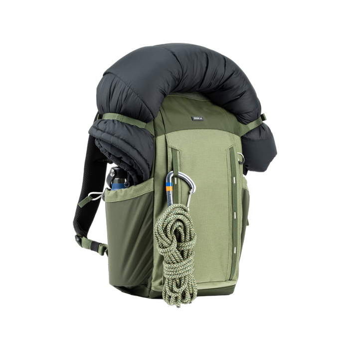 Despite its slim profile, the pack will hold a standard-sized camera body and the trifecta of zoom lenses. A minimal but plush harness systems enables comfortable, all-day carry and two large side pockets each fit a 950ml water bottle or can be used to carry a tripod.