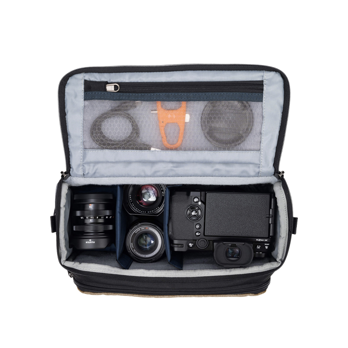 Think Tank Mirror Mover 25 passer til et standard spejlløst kamerahus plus 2 til 3 objektiver: korte til medium f/4 zoom eller korte til medium primes.
