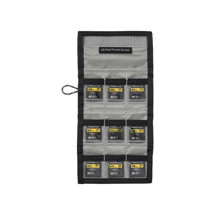 Praktisk pung til 9 SD- eller CFexpress Type A-hukommelseskort i klare åbninger, som nemt passer i lommen eller kan fastgøres til bæltet eller tasken.