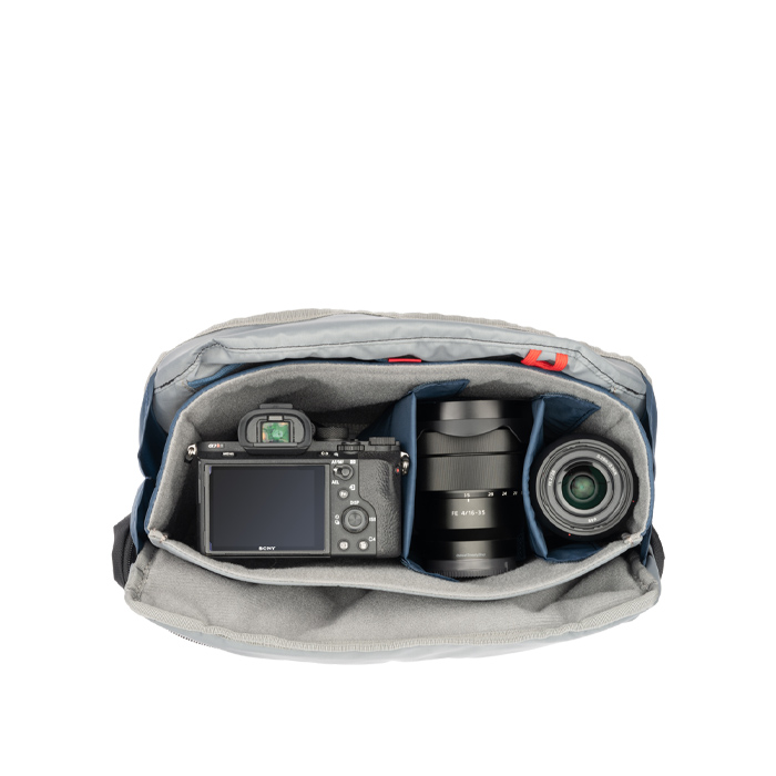 PressPass 20 er ideel som skuldertaske eller slyngetaske. En bred åbning giver hurtig og nem adgang til alt dit grej, uanset om du bruger den som kamerataske eller bare til at skifte objektiv. Den polstrede indsats kan også tages ud for at øge den indvendige plads og skabe en blødere, mere smidig taske.