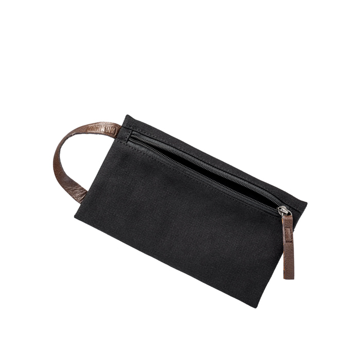 Simple zippered pouches crafted from stone-washed cotton canvas keep small items contained and secure.