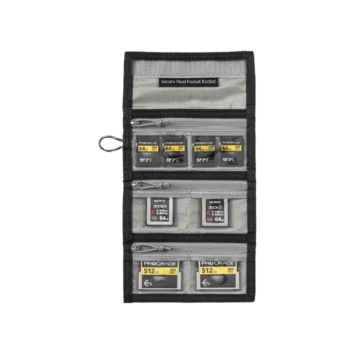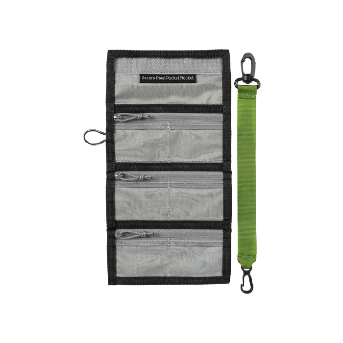 Secure Pixel Pocket Rocket har lynlåslommer, der giver maksimal sikkerhed til flere kortstørrelser.