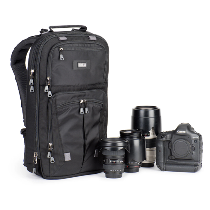 - Holds a full assortment of photo gear, tripod, 17” laptop and a full size tablet