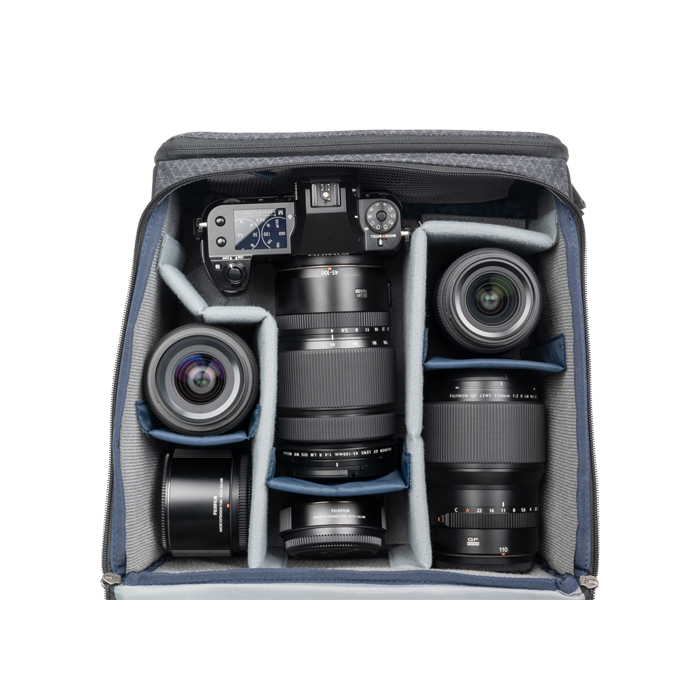 Den indvendige velexbeklædning med høj densitet og forstærkede vertikale ruminddelere beskytter dit udstyr, mens bærehåndtagene gør tasken nem at transportere. Tasken er fremstillet af vandafvisende stof med en DWR-belægning og beskytter dit udstyr. Den er en fantastisk løsning til både professionelle og fotografientusiaster.