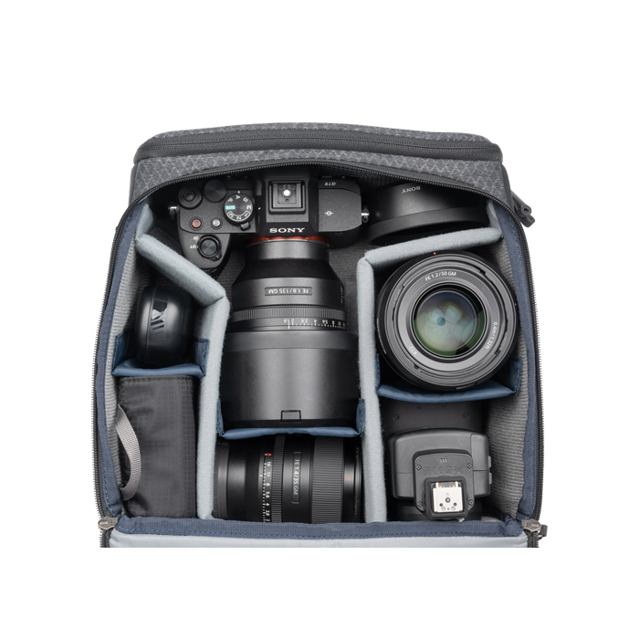 Den indvendige velexbeklædning med høj densitet og forstærkede vertikale ruminddelere beskytter dit udstyr, mens bærehåndtagene gør tasken nem at transportere. Tasken er fremstillet af vandafvisende stof med en DWR-belægning og beskytter dit udstyr. Den er en fantastisk løsning til både professionelle og fotografientusiaster.