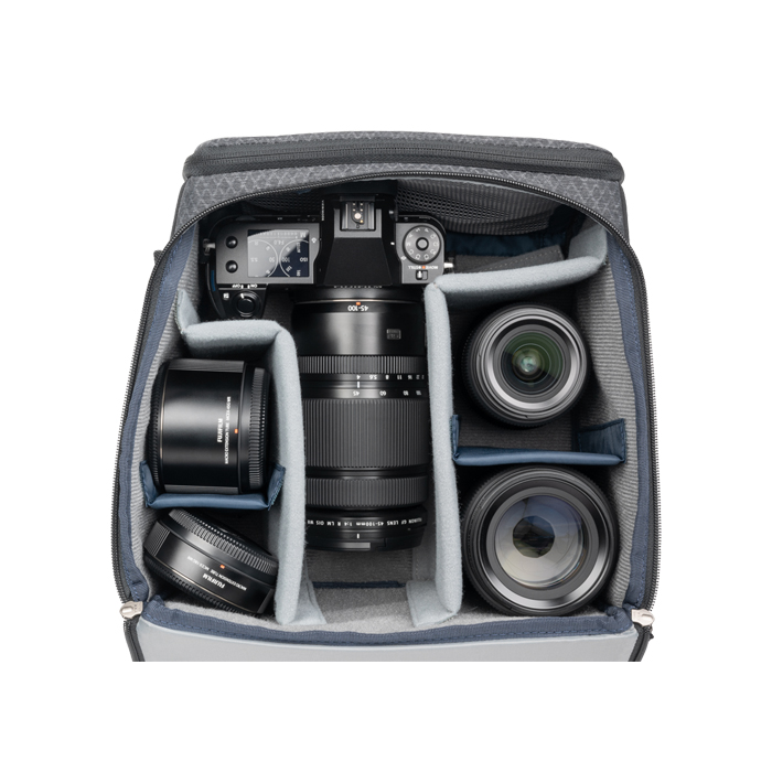 Den indvendige velexbeklædning med høj densitet og forstærkede vertikale ruminddelere beskytter dit udstyr, mens bærehåndtagene gør tasken nem at transportere. Tasken er fremstillet af vandafvisende stof med en DWR-belægning og beskytter dit udstyr. Den er en fantastisk løsning til både professionelle og fotografientusiaster.