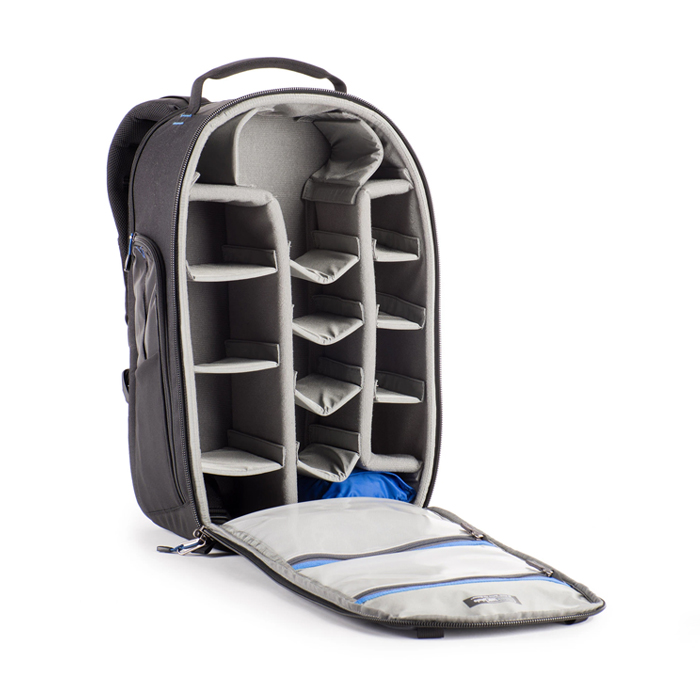 - Holds 1 gripped DSLR, 5–7 standard zoom lenses, a flash, a 15” laptop and a 13” tablet