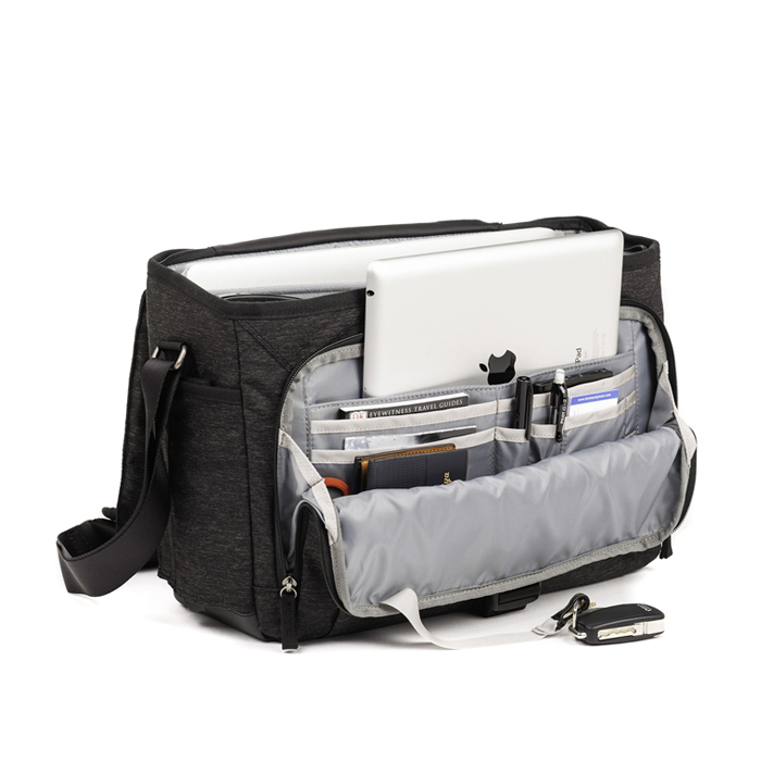Sized for professional lenses, the Think Tank Vision Shoulder Bag Series is designed not only for capacity but also for security. With its zippered top closure, your gear will stay safe and in place. Other standout features include a comfortable shoulder strap, waterproof tarpaulin bottom and expandable water bottle pocket. Constructed with durable yet stylish weather-resistant materials, the Vision offers access, security, and the quality you’ve come to expect from Think Tank.
