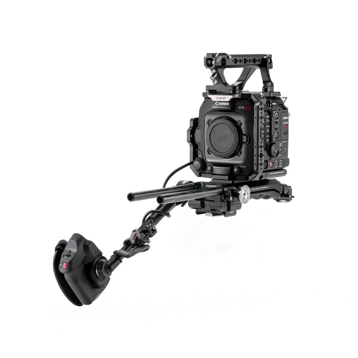 The Multifunctional Top Handle provides a comfortable grip to handle and operate the camera while offering additional mounting points for accessories. Designed to provide clearance for the original Canon Top Handle, this kit includes an alternative top plate that can be used to provide the clearance needed for this handle.