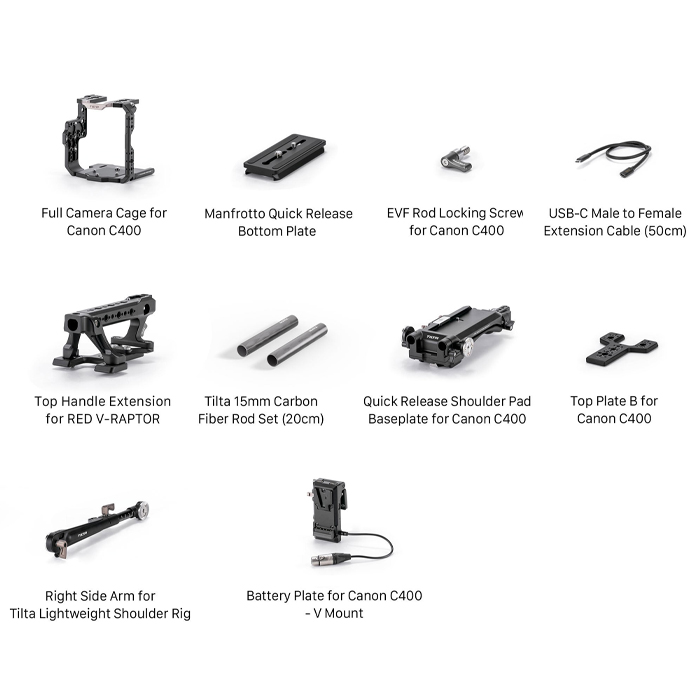 It also features Arri Rosettes, which can be used with the included Rosette Extension Arm and cable to mount the Canon C400’s Side Handle and have full access to its controls in a shoulder rig configuration.