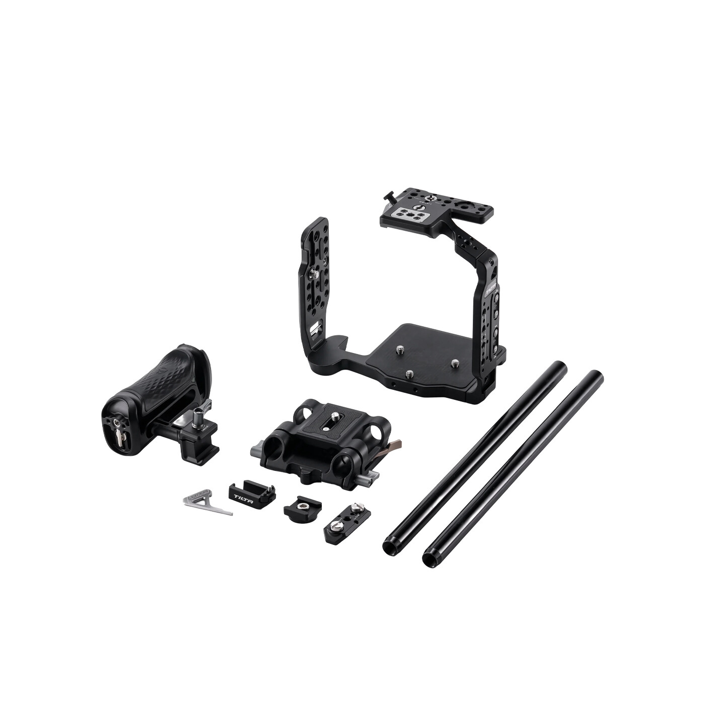 Kittet indeholder også en 15 mm LWS Baseplate, der giver mulighed for at montere forskelligt rod-baseret tilbehør som Follow Focus-systemer eller Matte Boxes. Baseplaten er kompatibel med Tilta Standard Dovetails og kan bruges med et bredt udvalg af quick-release-plader via 1/4″-20 og 3/8″-16 gevind i bunden.